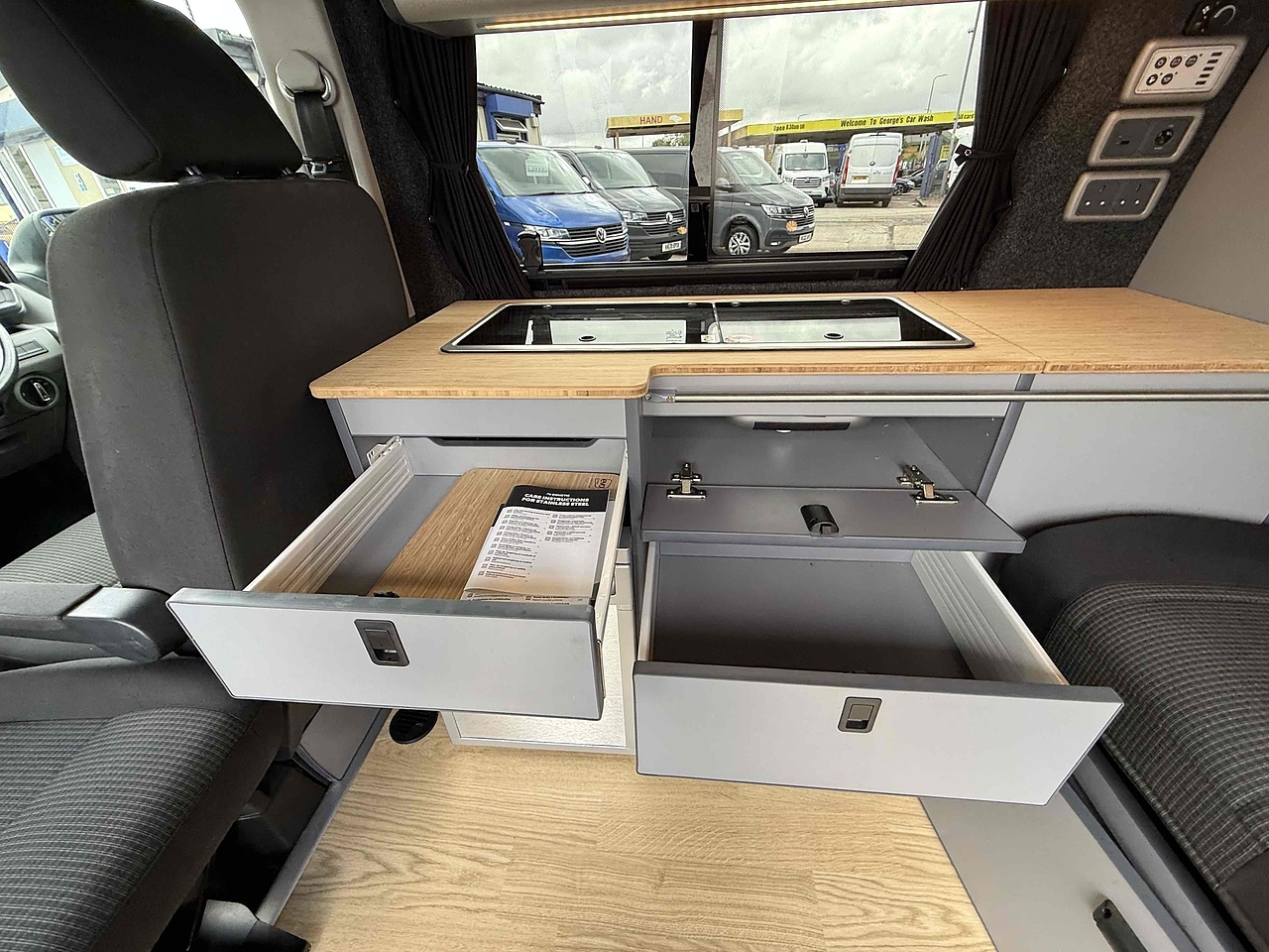 Camper Spec - 4 Berth with Diesel Heater, SKYLINE Scenic Canvass Pop Up Roof With Roof Bed and Opening Scenic Canvas (Includes 5 Year Warranty), Fully Glazed Side Privacy Windows x2 Sliding, RIB BED, Double Swivel Bench Seat, Full Leather, Complete Carpet Lining and Insulation, Leisure Battery, 140amp Split B2B Charger Relay, Grey Wood Effect Flooring, 4 LED Spot Lights + 2 Strip Lights Above Kitchen Units, Power Management System, Full Motorhome Approved Hibitation & Gas Check, Including 240v Battery Charger, External Hook-Up, x2 240v Sockets, 12v Power Outlet, USB Ports, SMEV 9222S Twin Gas Burning Hobs Including Tap and Sink, Gas Locker, Removable Water Tank, 50 Litre Dometic Fridge, Crash Tested RIB BED.