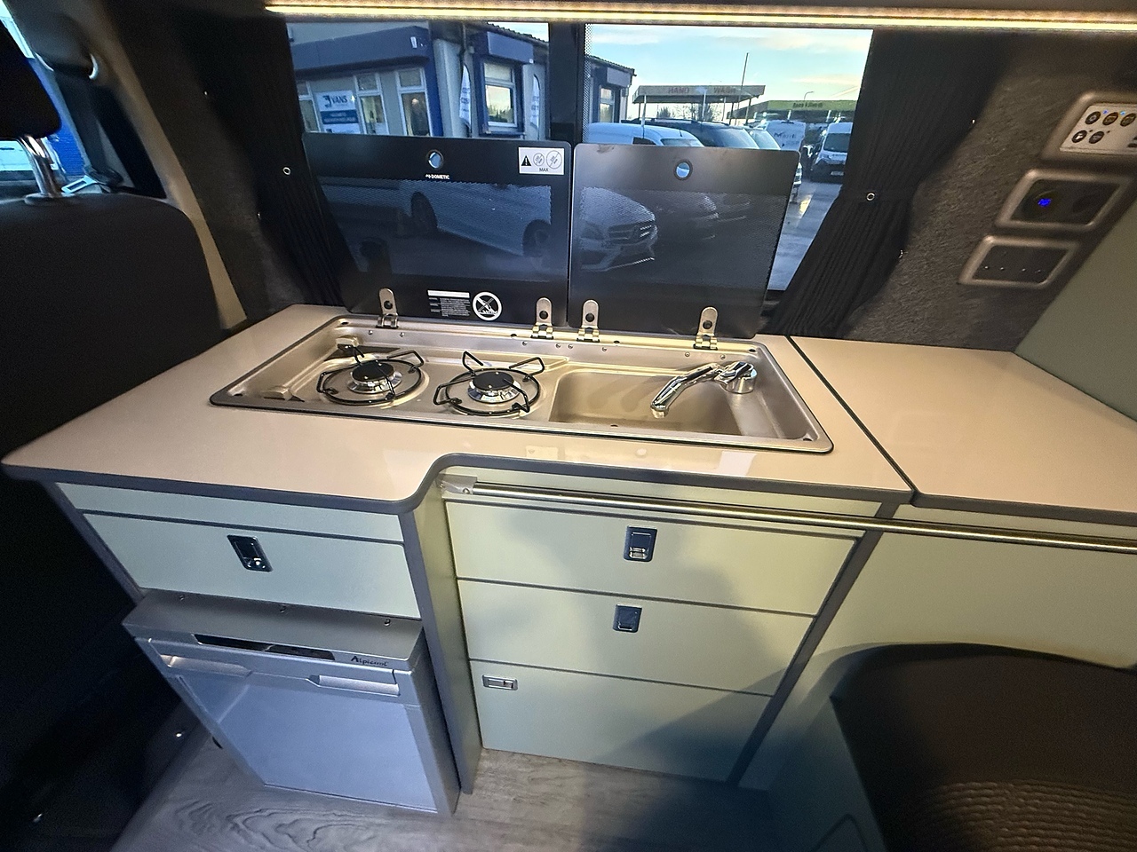 Camper Spec - 4 Berth with EBERSPACHER Diesel Heater, SKYLINE Scenic Canvass Pop Up Roof With Roof Bed and Opening Scenic Canvas (Includes 5 Year Warranty), Fully Glazed Side Privacy Windows x2 Sliding, RIB BED, Double Swivel Bench Seat, Full Leather, Complete Carpet Lining and Insulation, Leisure Battery, 140amp Split B2B Charger Relay, Grey Wood Effect Flooring, 4 LED Spot Lights + 2 Strip Lights Above Kitchen Units, Power Management System, Full Motorhome Approved Hibitation & Gas Check, Including 240v Battery Charger, External Hook-Up, x2 240v Sockets, 12v Power Outlet, USB Ports, SMEV 9222S Twin Gas Burning Hobs Including Tap and Sink, Gas Locker, Removable Water Tank, 50 Litre Dometic Fridge, Crash Tested RIB BED.